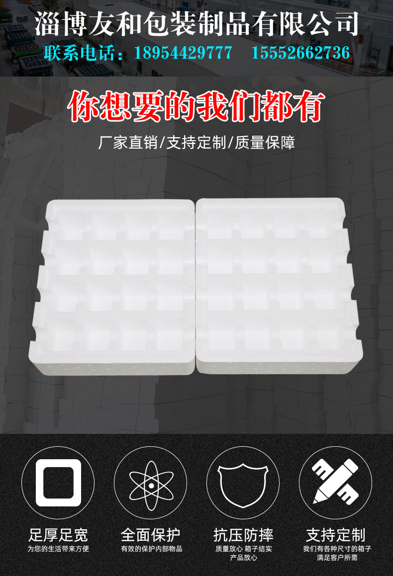 ????淄博友和包裝制品有限公司是專業(yè)的山東泡沫包裝箱加工廠家,本廠主要產(chǎn)品有:泡沫包裝箱,泡沫保鮮箱,水果蔬菜泡沫包裝箱,水果蔬菜泡沫保鮮箱,瓷磚泡沫包裝箱等,產(chǎn)品暢銷全國,深受用戶好評。泡沫包裝定做可以聯(lián)系我們網(wǎng)站 http://m.iosqz.cn/ 上電話,我們會第一時間跟您聯(lián)系。